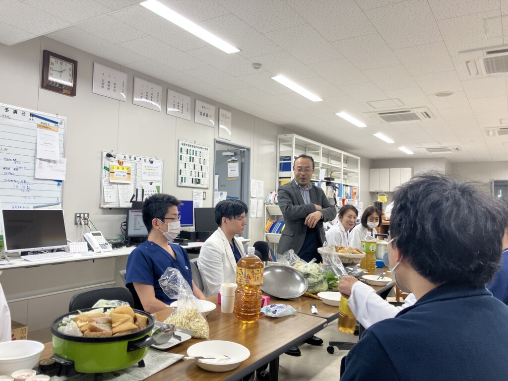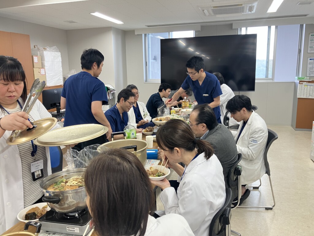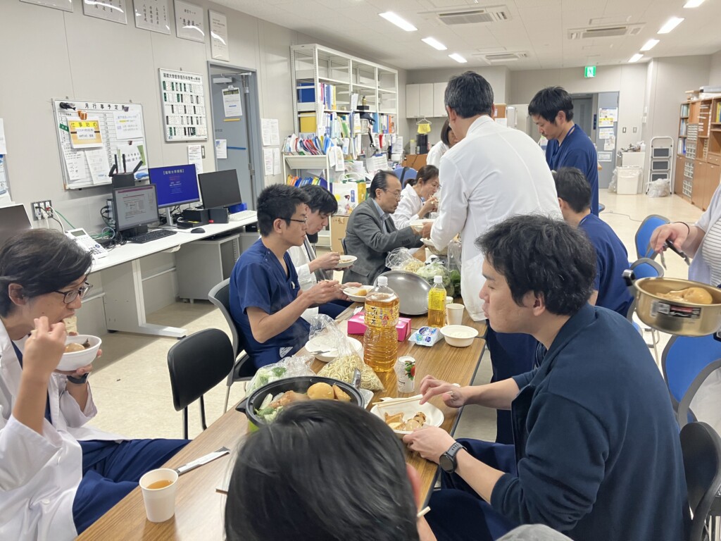 本日、2025年12月26日は仕事納めの日です。医局では、毎年恒例の納会を開催しました。みんなで美味しいおでんを囲み、賑やかで和やかな会となりました。今年は、新病院で新たなスタートを切った節目の1年でした。当初は不慣れな点も多く、戸惑う場面もありましたが、徐々に環境にも慣れ、それぞれが自分の役割を果たし、ベストを尽くすことができた一年だったと感じています。来年はさらなる飛躍を目指し、医局員一同が一丸となって、より一層精進してまいりたいと思います。皆様、どうぞ良いお年をお迎えください。